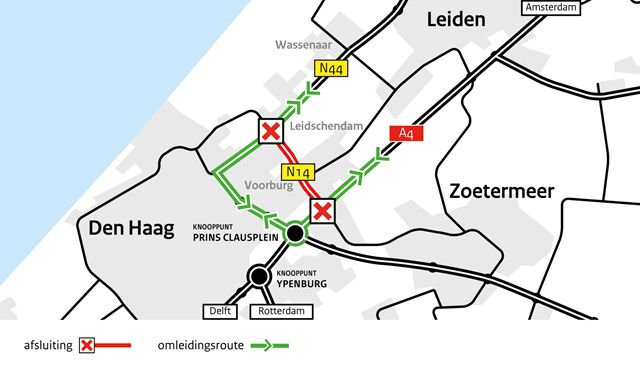 De werkzaamheden vinden plaats in de Sijtwendetunnels (Spoortunnel, Parktunnel en Vliettunnel) in het weekend van vrijdag 19 juni 21.00 uur tot maandag 22 juni 05.00 uur en vinden plaats in de nacht van vrijdag 3 juli 21.00 uur tot zaterdag 4 juli 05.00 uur. Het verkeer wordt in beide richtingen omgeleid via de autoweg N44, snelweg A12 en snelweg A4. De informatiepanelen boven en langs de weg geven de omleidingsroute aan. Weggebruikers moeten tijdens de werkzaamheden rekening houden met een extra reistijd van 5 tot 10 minuten.