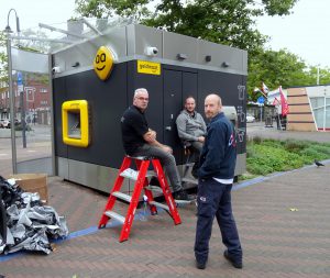 De pinautomaat die de Rabobank nog geen jaar geleden installeerde op de hoek van de Koningin Julianalaan en de Frans Mortelmansstraat, is al weer verdwenen. Hij is vervangen door een nieuwe Geldmaat. De oude zwartwit foto’s van het begin van het winkelcentrum Julianabaan die de Rabo-voorziening sierden zijn eveneens weg.