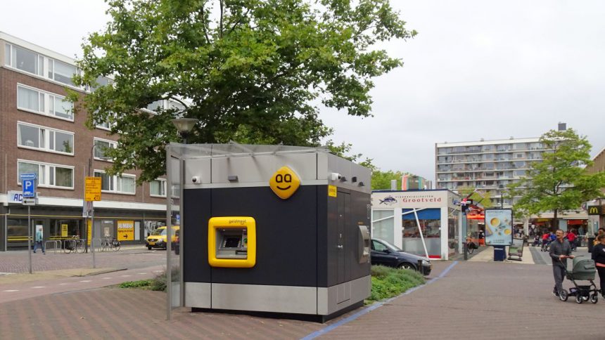 De pinautomaat die de Rabobank nog geen jaar geleden installeerde op de hoek van de Koningin Julianalaan en de Frans Mortelmansstraat, is al weer verdwenen. Hij is vervangen door een nieuwe Geldmaat. De oude zwartwit foto’s van het begin van het winkelcentrum Julianabaan die de Rabo-voorziening sierden zijn eveneens weg.