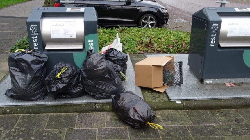 Het lijkt erop dat de grote partijen zwerfvuil iets afnemen. Toch vond afval bestrijder Ap de Heus tijdens zijn wekelijkse afvalroute in meer dan 50 straten rotzooi. Veel grofvuil dat niet in zo’n container past, maar nog meer volle containers waar de rommel dus bij wordt gezet. En dat moet toch simpel op te lossen zijn? (foto Ap de Heus)