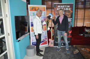 Rinus Gerritsen reikt Supersister-boek uit aan Robert Jan Stips