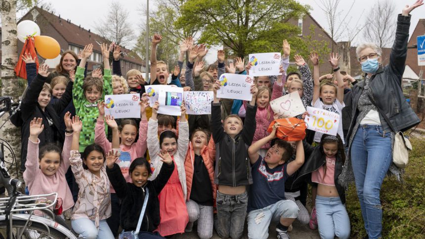 Groep 5B van de Samenwerkingsschool Emmaüs uit Leidschendam kreeg gisteren op feestelijke wijze een boekenpakket van de Bibliotheek aan de Vliet. Sinds afgelopen november stelde de bibliotheek ruim 100 boekenpakketten samen voor basisscholen in Leidschendam-Voorburg en Rijswijk. Op het moment dat de bibliotheken moesten sluiten vanwege de coronamaatregelen konden individuele leners toch boeken lenen via de afhaalbibliotheek. Lenen met de groep in de bibliotheek of boeken laten uitzoeken door ouders of leerkrachten was helaas niet meer mogelijk. Om te zorgen dat er op school toch leuke en geschikte boeken aanwezig zijn, maakt de bibliotheek boekenpakketten voor de basisscholen.
