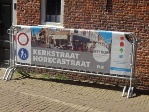 Eerder in de week verschenen in de Kerkstraat al hekken met een doek erover waarop werd aangegeven dat de Kerkstraat een Horecastraat werd.