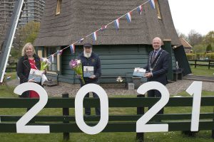 De festiviteiten rond het 400 jarig bestaan van Molen de Vlieger in Voorburg moeten door de coronamaatregelen wachten tot begin september. Toch was er zaterdag al reden voor feestvreugde. Die dag hebben burgemeester Klaas Tigelaar, wethouder Astrid van Eekelen en molenaar Bram Zonderop de eerste exemplaren ontvangen van een boek over Molen De Vlieger. Het is een uitgave van de Historische Vereniging Voorburg in samenwerking met Stichting Molen De Vlieger ter gelegenheid van het 400-jarig bestaan van deze molen. In dit boek wordt met tekst, kaarten en foto’s een beeld gegeven van de geschiedenis van deze poldermolen vanaf de bouw in 1621 tot en met het huidige molenmuseum.