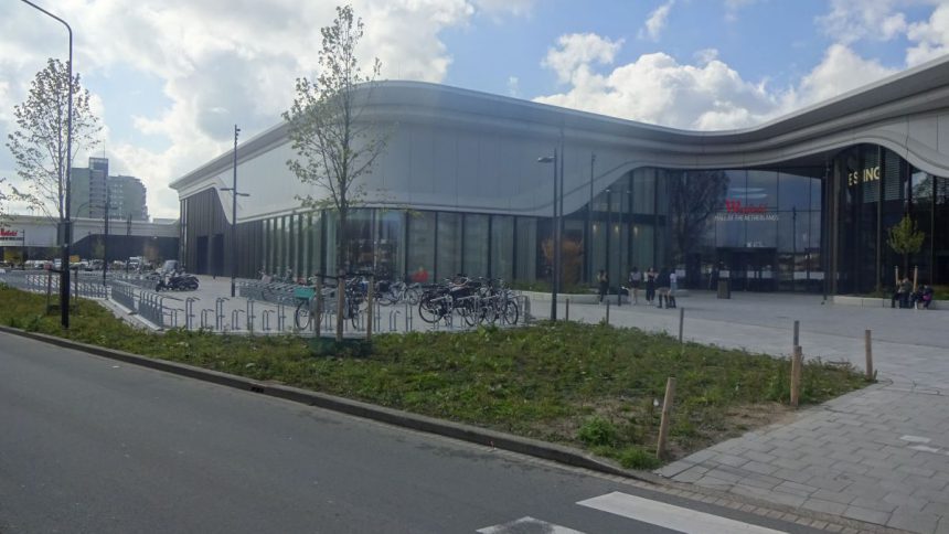 Op de hoek van de Heuvelweg en de Burgemeester Banninglaan, bij de in- en uitgang van de Mall, komt een deels overdekte fietsenstalling met bewaking. De stalling, goed voor zo’n 200 fietsen, komt in de plaats van de fietsenrekken die er nu staan. Rondom de stalling komt een hek. Het centrale deel krijgt een overkapping van 3 meter breed en 35 meter lang. Middenin komt een kantoortje voor de bewaking en een toilet. Het geheel wordt donkerbruin met spijlen (middenstuk). Het ontwerp is van Kees Marcelis.