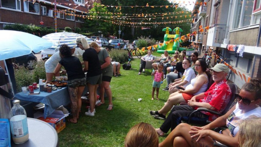 Bewoners van de Von Geusaustraat in Voorburg hebben een groot buitenspeelfeest voor de kinderen georganiseerd. Ze kregen hulp van Vlietwensen die sponsor was. Daarom waren er maar liefst drie grote luchtkussens. Een dertigtal buren was present om het nog gezelliger te maken. Die namen allemaal hun stoeltje mee, om hun kinderen een beetje in het oog te houden. En ze konden even lekker bijpraten en elkaar nog beter leren kennen. Feest dus voor jong en oud. (foto Ap de Heus)