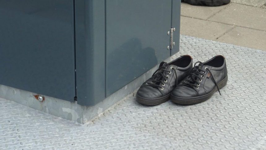 Wie zijn schoenen kwijt is, moet maar eens bij de vuilcontainer kijken. Het is zomaar een voorbeeld van de troep die afvalbestrijder Ap de Heus tegenkomt, tijdens een rondje fietsen. Wel valt het hem op dat de gemeente steeds schoner wordt. Waren er ooit meer dan 100 vervuilde plekken, nu zijn het er iets meer dan 40. Dat geeft een goed gevoel, aldus De Heus. Nog even doorzetten en Leidschendam-Voorburg is echt een schone stad. (foto Ap de Heus)