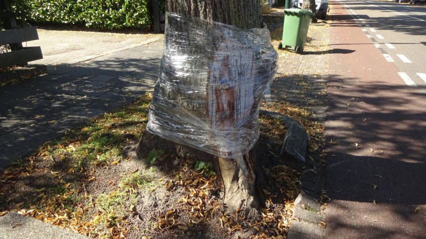 Stadsbeheer doet een poging om een boom op de kruising Prinses Mariannelaan/Westenburgstraat in Voorburg-West te redden. Op 27 juli knalden op dit kruispunt twee auto’s op elkaar. Een auto komende uit de Westenburgstraat klapte frontaal in de zijkant van een op de Prinses Mariannelaan passerend voertuig. Daarbij raakte één der auto’s ook de boom waarbij een deel van de bast los kwam en afbrak. Om te voorkomen dat de boom aan dit letsel overlijdt wordt nu getracht met een plastic omhulling de boom de gelegenheid te bieden de schade zelf te herstellen.
