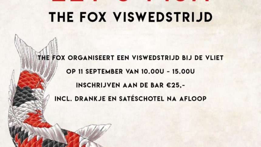 De eigenaar van bar-restaurant The Fox, Herenstraat 10 in Voorburg, organiseert op zaterdag 11 september een viswedstrijd in de Vliet. Deelname kost 25 euro, te betalen in The Fox. De wedstrijd loopt van 11.00 tot 15.00 uur. Deelnemers kunnen daarna genieten van een gratis drankje en een satéschotel. Uiteraard zijn er ook prijzen voor de winnaars van de viswedstrijd.