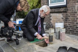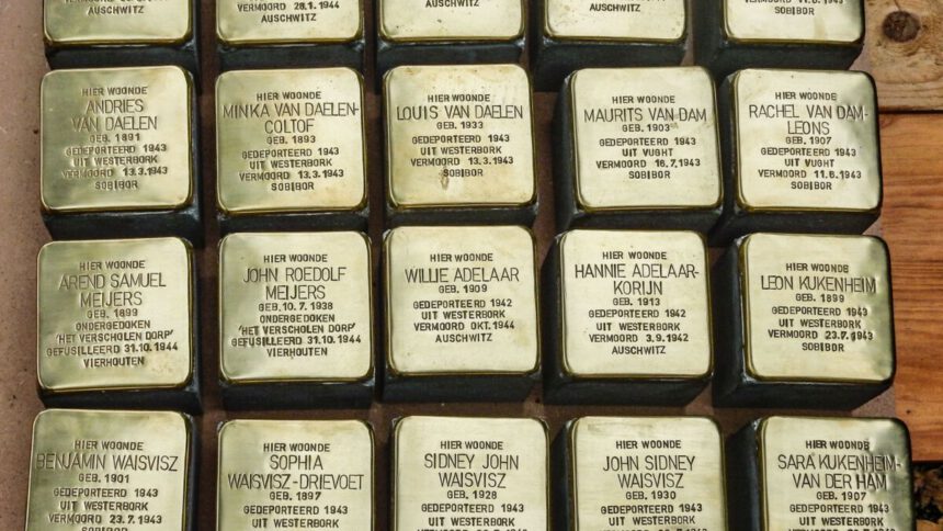 Stolpersteine of ook wel struikelstenen genoemd zijn bedoeld om de herinnering aan de Joodse oorlogsslachtoffers levend te houden. De naam is ontleend aan het feit dat voorbijgangers het opvallende steentje in de stoep zien en erbij stilstaan om de naam en overige gegevens te lezen. De gedachte hierachter is: ‘Een mens is pas vergeten als zijn naam vergeten is’. Een Stolperstein is een messing plaatje van 10×10 centimeter met daarin gegraveerd naam en geboortedatum, jaar van deportatie en plaats waar de voormalige bewoner is vermoord. Het plaatje is bevestigd op een steentje van hetzelfde formaat. (foto’s Stichting Stolpersteine en Michel Groen)