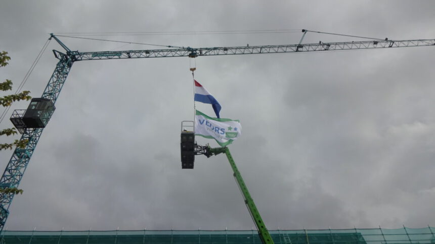 Veurs Voorburg, de VMBO-school met zo’n 400 leerlingen, zal in juni 2022 een nieuw gebouw aan de Rijnlandlaan in Voorburg betrekken. Gisteren werd het hoogste punt van de nieuwbouw bereikt. Veurs Voorburg zit nu nog in een pand aan de Van Horvettestraat in Voorburg. Over de nieuwbouw is meer dan 20 jaar gesproken.