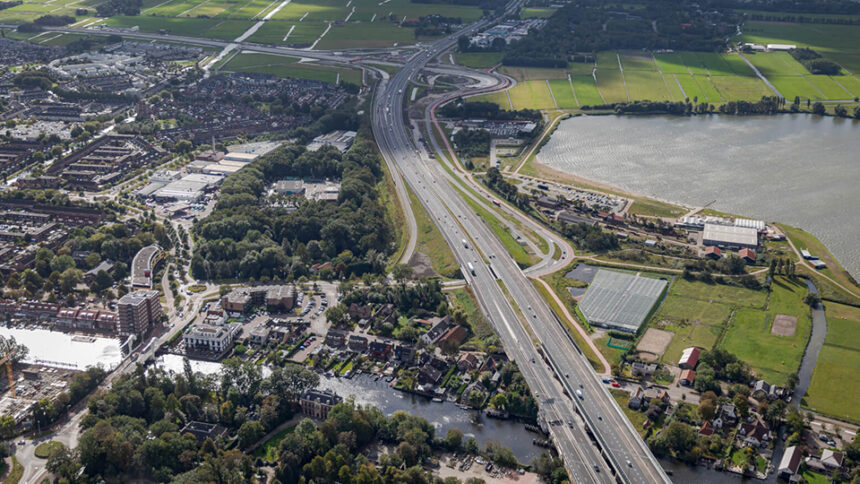 Maandag 29 november tussen 21.00 – 05.00 uur: Maandag 29 november is een reservedatum wanneer de werkzaamheden van 15/16 november door (weers)omstandigheden niet door kunnen gaan. (Luchtfoto RijnlandRoute)