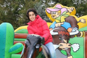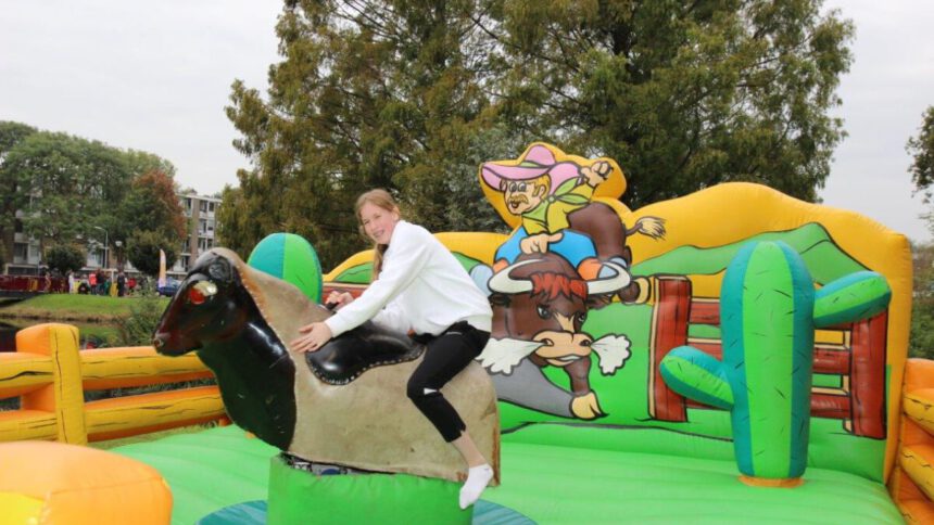 Buurtorganisatie Fenomeen Bovenveen heeft zichzelf overtroffen met een geweldig Westernfeest. Dit werd gehouden in een deel van Park ’t Loo in Voorburg. Er waren veel activiteiten, waaraan vooral de jeugd deelnam. Ze konden in de zweefmolen, pony rijden, op het springkussen, hoefijzer gooien en rodeo rijden. Voor de oudere bezoekers was er een workshop line dance. De hele middag was er een drukte van belang. De buurtbewoners kijken nu al uit naar het volgende feest. (foto’s Ap de Heus)