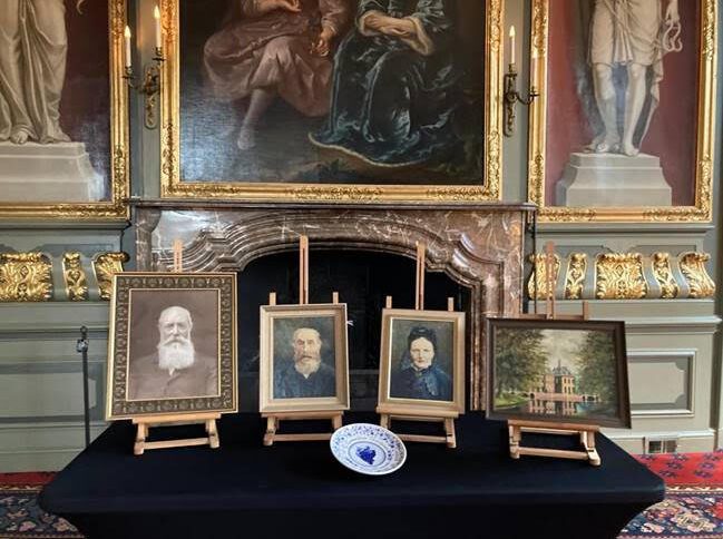 Nazaten van de familie Gussekloo hebben deze week enkele bijzondere stukken geschonken aan de Stichting Duivenvoorde. Het gaat om twee geschilderde portretten, een schilderij van het kasteel en een herdenkingsbord. De portretten beelden Dirk Gussekloo en zijn echtgenote Johanna Frederica Donker af. Dirk was tussen 1866 en 1909 de legendarische tuinbaas op Duivenvoorde. De familie Gussekloo leverde tussen 1842 en 1960 zelfs drie generaties tuinbazen. Dirks kleinzoon, Gijsbert, schilderde zijn grootvader in het midden van de 20ste eeuw. Van Gijsberts hand is ook het gezicht op Duivenvoorde.