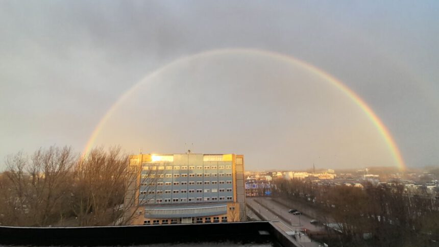 Frans Raafs verrast onze bezoekers vaker met mooie foto’s. Deze is wel heel fraai: een volle regenboog boven het vroegere Libanon-tribunaal in Klein Plaspoel Polder (Dr. van der Stamstraat). Zondag gemaakt en zo bijzonder dat we hem u niet willen onthouden.