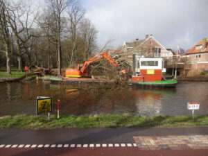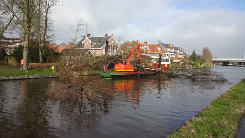 Op last van de provincie Zuid-Holland, beheerder van de Vliet, is de waterweg maandag in Voorburg ontdaan van omgewaaide bomen die dwars over het kanaal lagen en scheepvaart blokkeerden.