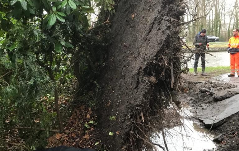 Stadsbeheer kijkt met gemengde gevoelens terug op de afgelopen stormperiode: ‘Dudley, Eunice en Franklin deze namen klinken als een vrolijke, vriendelijke drieling. Maar wanneer ze gebruikt worden om een drielingstorm aan te duiden berg je dan maar. Zes dagen lang hebben ze onze gemoederen beziggehouden. Naast alle materiële schade hebben we afscheid moeten nemen van wel zo’n vijftig bomen en nog steeds komen er meldingen binnen. Het is niet alleen de boom waar we afscheid van moeten nemen. Vaak leven er ook allerlei dieren in de boom. In Park Vreugd & Rust bijvoorbeeld is met deze ‘Grande Dame’ ook de huisvesting van vleermuizen vernield. Deze beuk aangeplant rond 1850 is niet meer en samen met haar zijn de vleermuizen ook vertrokken. Gelukkig kunnen de vleermuizen nog ergens anders ‘wortelen’.