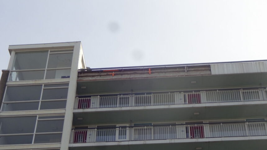 De daklijst van flat Pleinzicht, Tuyl van Serooskerkenstraat 87-155 in Voorburg, vertoont de nodige gaten. Delen van de daklijst, die bestaat panelen, zijn verdwenen. De woningen in het flatgebouw zijn eigendom van de bewoners. Er is wel een Vereniging van Eigenaren. Die is in principe verantwoordelijk voor het onderhoud van het gebouw. Het ziet er naar uit dat de panelen op een aantal latten zijn geschroefd die op hun beurt weer aan de gevel bevestigd zijn. Of de gemeente op de hoogte is van de toestand, is onduidelijk.
