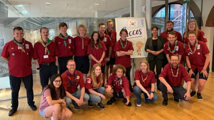Een tiental scouts uit Leidschendam-Voorburg reist deze zomer af naar Zuid-Korea voor de Wereld Jamboree. Met een quiz, een presentatie van 3 deelnemers en het spel ‘Chicken are you ready’ heeft wethouder Bianca Bremer hen alvast uitgezwaaid. Niet alleen om hen heel veel plezier te wensen, maar ook om het belang van scouting voor kinderen en jongeren te benadrukken. Tijdens de 25e Wereld Jamboree deze zomer komen tienduizenden scouts van 14 tot en met 17 jaar uit de hele wereld samen. Om hen een klein beetje op weg te helpen, kregen zij van wethouder Bianca Bremer een pakketje mee met handige spullen voor onderweg. De scouts testten met een quiz de kennis van de wethouder over scouting en leerden haar een spel.