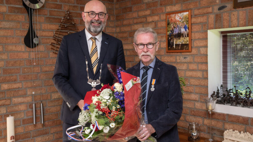 Leo Broeren ontving een Koninklijke onderscheiding uit handen van burgemeester Vroom. De benoeming tot Lid in de Orde van Oranje-Nassau kreeg de heer Broeren vanwege zijn vrijwilligerswerk in de zorg. De heer L.C.J. Broeren is sinds 1996 vrijwilliger bij WoonZorgcentra Haaglanden. De heer Broeren is activiteitenbegeleider en chauffeur, haalt boodschappen en wandelt met bewoners. Hij is altijd inzetbaar voor allerlei hand-en-spandiensten. Ook was hij van 2000-2012 buddy van een bewoner op locatie Prinsenhof. Hij ondernam wekelijks een activiteit met hem en bracht hem naar zijn afspraken bij de tandarts en het ziekenhuis. Door persoonlijke omstandigheden kon de heer Broeren zijn lintje niet ontvangen tijdens de lintjesregen in april waardoor hij nu alsnog thuis werd verrast. (foto Michel Groen)