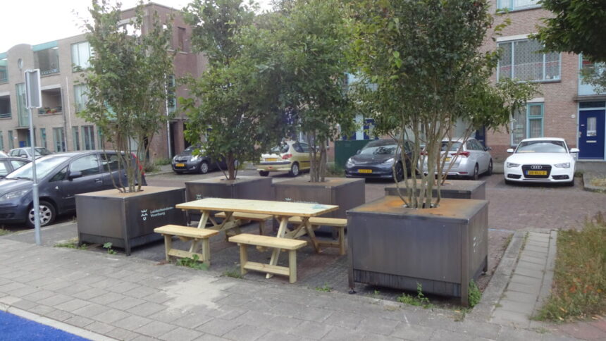 ‘Woensdag 27 augustus opende wethouder Marcel Belt samen met buurtbewoners een tijdelijke straattuin in de Van Heurnstraat in Voorburg. De straat (ter hoogte van het speeltuintje) is voor 3 weken ingericht met extra groen en zitplekken. Komende weken gaat de gemeente na wat dit met de straat en de buurt doet en hoe de bewoners het ervaren’.