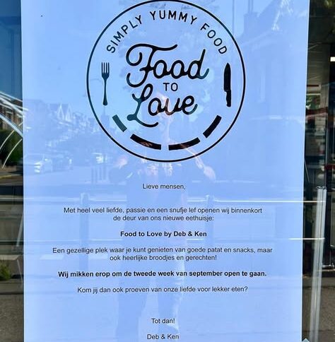 Op Parkweg 54 Voorburg is een nieuw eethuisje geopend ‘Food to Love’. Vooralsnog kan men er alleen eten afhalen aangezien de gemeente, volgens de eigenaren Debby en Kenneth, talmt met het afgeven van de benodigde vergunningen. De eigenaren koken zelf. ‘Daardoor kunnen we verse maaltjes bieden waar je niet te diep voor in de buidel hoeft te tasten. Wij zijn creatieve kokkies met passie! Verse ingrediënten en uit verschillende windstreken. En natuurlijk vergeten we ook de vegetariërs niet. Daarnaast hebben we verse sandwiches en belegde broodjes. Bij ons kun je ook terecht voor een goed patatje, een kroketje, crispy chicken burger of een andere snack uit. Hopelijk over nog niet al te lang mogen we jullie ook verwelkomen in ons tentje om bij ons je maaltje te nuttigen. Ook kun je vanaf dan lekker een biertje of wijntje bestellen’. Openingstijden woensdag tot en met zaterdag 11.00-20.00 uur. Zondag 13.00-20.00 uur.