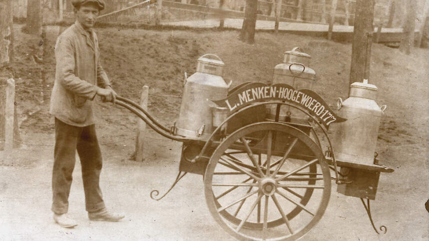 Maar terug naar het begin, naar de vroege twintigste eeuw in Leiden en de boerendorpen eromheen. Melk speelde toen in het dagelijkse menu een belangrijke rol. En het melkbedrijf mocht je gerust een industrie noemen. Maar dan wel een die nog geheel van mankracht afhankelijk was. Van het ophalen van de gevulde melkbussen bij de boer, het in kleine melkinrichtingen verwerken van de rauwe melk tot een drinkbaar product of afgeleiden daarvan zoals pap, tot aan het zorgvuldig spoelen van de bussen en die weer terugbrengen naar de boer. Maar dan moest het product nog naar de consument. Die taak lag bij de melklopers, die dagelijks in een of meerdere wijken de melk bij de klant aan huis afleverden. Het beeld dat daarbij hoort: een handkar of ponykar met daarop enkele glanzend opgewreven koperen melkbussen met onderaan een kraantje. Uitermate arbeidsintensief, dus. Wat later kwamen melkwinkels in zwang, waar de klant ook de andere lekkernijen van de melkinrichting kon kopen, zoals pap, room, kaas en in de zomer zelfs ijs.